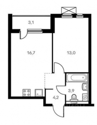 Продается однокомнатная квартира, 39.3 кв.м., 22/25 эт