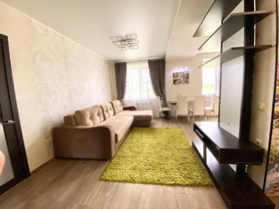Объект 6550. Продается 2-к квартира в районе Кошелев по ул.Георгия Амелина, 35. Кирпичный дом 2014 года. Индивидуальное отопление. Качественный ремонт, окна пвх, хорошие двери, натяжные потолки, теплые полы, биметал.радиаторы, санузел в плитке, комнаты изолированные. Остается мебель и техника, кроме холодильника.